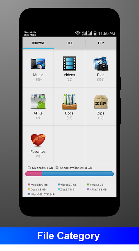 File CategoryBrowse files by pathAccess the mobile device file by FTP Server