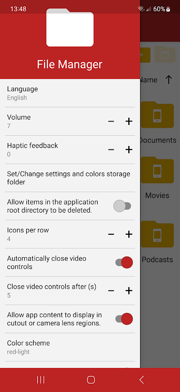 • 使用android 的文件和文件夾選擇器來選擇應用程序可以訪問的文件和文件夾。