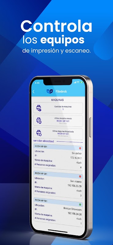 Filedesk es un gestor documental con funciones avanzadas que permite almacenar y buscar los documentos en formato PDF, gracias a esta solución se puede acceder a la información con un solo clic desde cualquier momento y lugar. Filedesk digitaliza e imprime documentos fácilmente desde las impresoras RICOH que integre la tecnología Smart Operation Panel. A través de la app puedes gestionar la información de tu empresa o institución en cualquier lugar que te encuentres. Puedes compartirlo con otras personas y dar privilegios, al igual que adicionar nuevos archivos y conectarte a los dispositivos RICOH Smart Panel para imprimir en un solo click. Esta herramienta crea un puente entre la web y la impresora multifuncional (SOP), sirve como gestor documental driverless, puedes imprimir archivos subidos o puedes escanear documentos para digitalizarlos. Al reducir la duración y la incertidumbre de sus procesos, su equipo puede concentrarse en el trabajo que realmente impulsa la productividad y los beneficios.