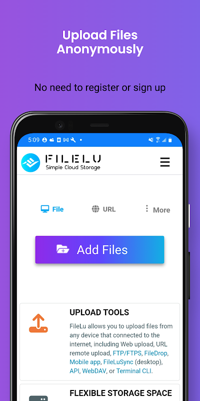 APKPure 使用簽章驗證功能,確保為您提供無病毒的 FileLu - Cloud Storage Backup APK 下載。