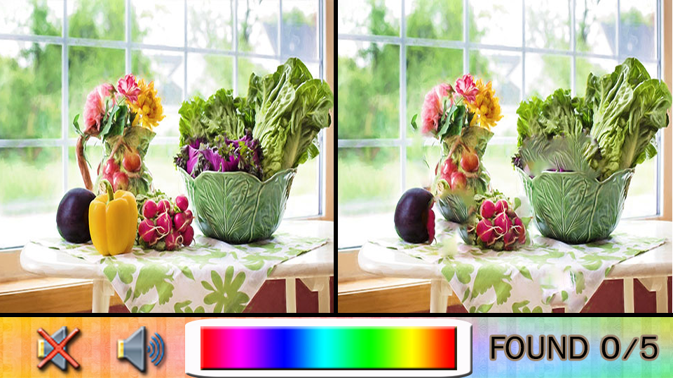 這是一個益智遊戲被稱為“小黃瓜”,“青椒”,或“蘿蔔”,你必須兩張照片之間。試著找到他們在時間用完不浪費你的生命的所有了。如果您遇到問題,有一個提示系統,以幫助您!
