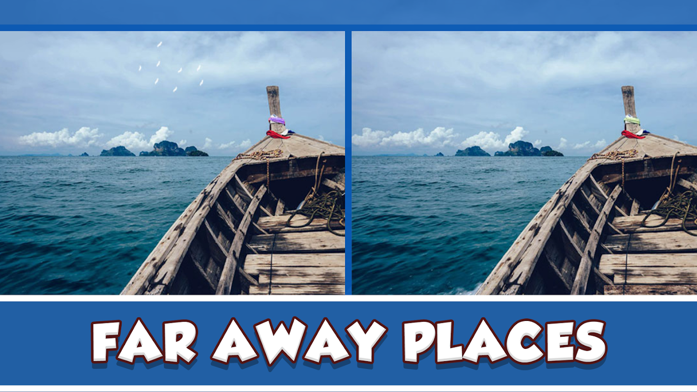 在這個“找不同”的遊戲,你有超過100個令人費解的高清圖像和500分歧的辦法。它是為孩子和成人與來自許多不同的領域美麗的畫面完美的益智遊戲。可愛的動物,美麗的風景,脈動的城市街道或休閒度假的熱點 - 我們已經收集到的最有趣的圖像為您的難題樂趣。