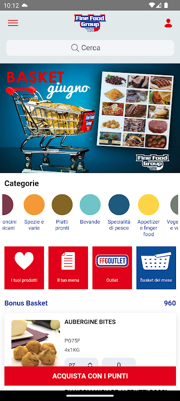 在 Fine Food Group 應用程式中,您還可以找到可以用來購物的購物籃積分; FFG Outlet 提供的優惠;您最喜歡的產品和您通常訂購的產品。