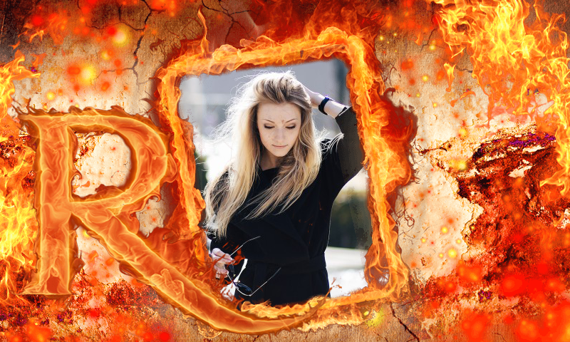 Fire Text Name Art photo frame editor App Makes Your Photo Looks like Firy, with firy alphabets, fires border frames .
