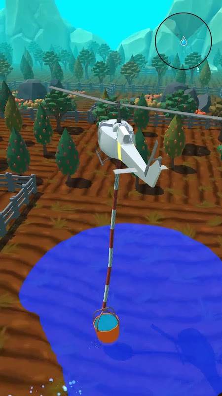 Drive your Fire Helicopter, Fill the Bucket with Water and Put out the Fire in Forest, City or Fields.
