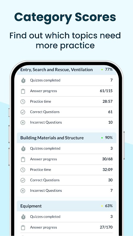 Ace Firefighter I & II 考試:練習測驗、抽認卡和進度報告!