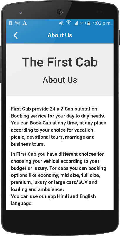 First Cab provide 24 x 7 Cab outstation Booking service for your day to day needs. You can Book Cab at any time, at any place according to your choice for vacation, picnic, devotional tours, marriage and business tours.