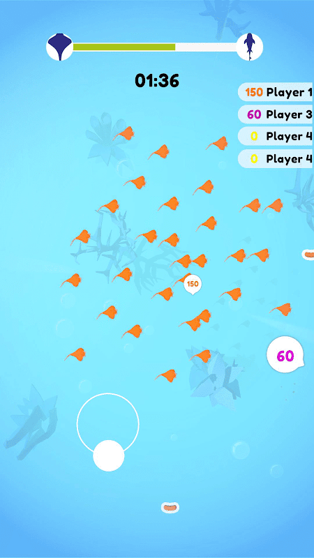 Fish Swarm 是一款生存遊戲。你將挑戰你的對手,成為海洋中最強大的群體。通過吃魚餌,你會進化你的魚,最終你可以控制你的鯊魚軍隊並恐嚇其他人。或者你可以收集魚,增加你的人群並消滅鯊魚。收集、進化、狩獵並獲勝!