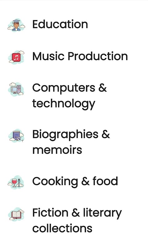 1. 全面選擇:訪問一系列令人印象深刻的電子書,涵蓋廣泛的主題,包括藝術、小說、歷史、計算機科學、政府工作準備、健康和健身以及音樂製作。