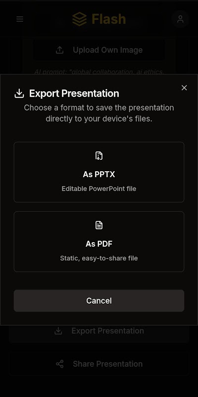 只需輸入您的主題——Flash 即可使用先進的 AI 技術立即產生完整的簡報。每張投影片都包含清晰、結構化的文字和相符的視覺效果,讓您專注於訊息傳遞,而無需操心格式。
