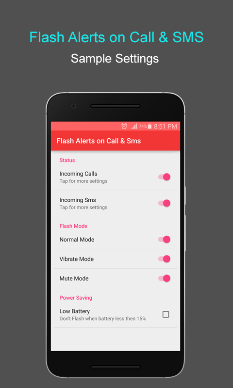 You will set your flashlight alert on call flash alerts easily in vibrate mode for missed call smart notifications flash alerts and for alert message of your device as well.