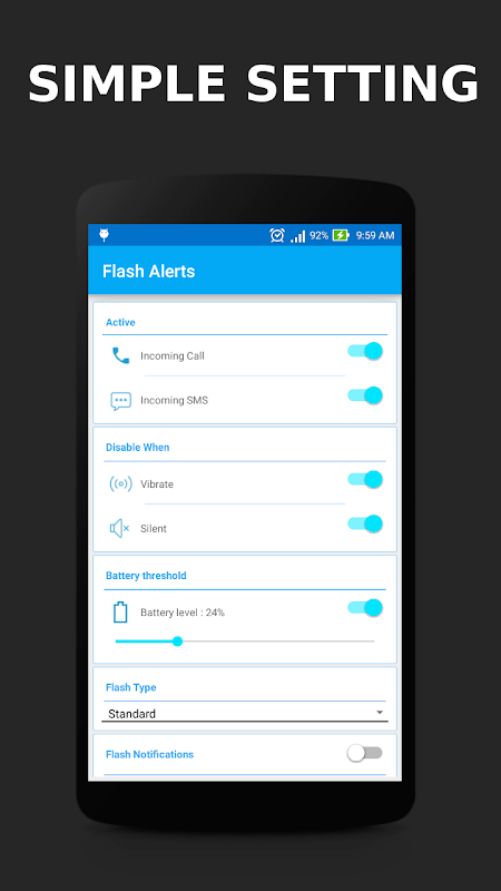 Flash Light Blink Alert on Text Message