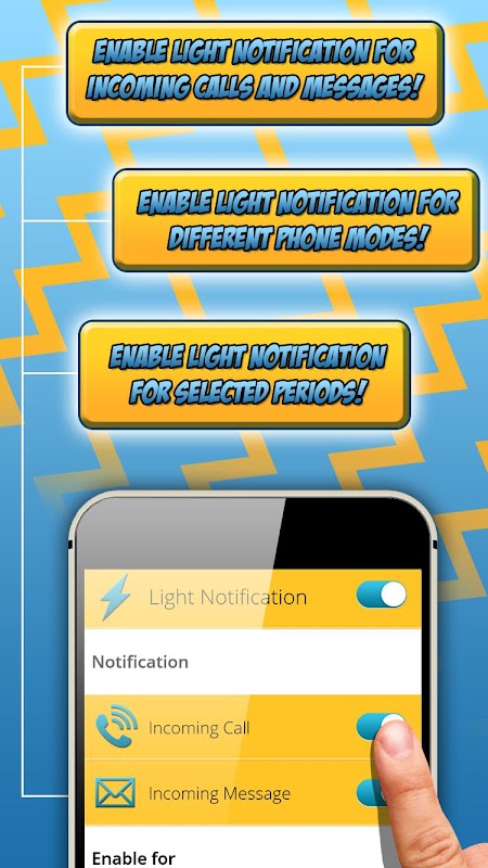 並不是所有的智能手機都提供默認的閃光燈 眨眼隨叫隨到或消息。只有少數型號提供這種豪華的功能。所以,如果你喜歡手機閃爍的來電和短信的想法,請檢查我們的通知應用程序,免費!您可以根據自己的喜好調整鈴聲手電筒下載。關閉或打開手電筒以接收短信或來電,並瀏覽其他選項。你還可以決定什麼時候這個發光二極管手電筒應停止指示您的通知 - 如果你的電池電量低,選擇這個選項。說到電池壽命,Android™的發光二極管閃光燈通知燈是一個更好的選擇電池!你甚至不必激活設備或打開主屏幕!讓發光二極管燈通知提醒您有關未接電話和其他信息!你在聚會嗎?還是在會議?壓力沒有更多關於錯過您的設備上的活動!只需打開閃光燈的通話和短信! 閃警報應用程序在這裡,所以你不要錯過手機活動!以您想要的方式自定義您的閃警報通知!當電話關閉時,缺少來電提醒在這裡!