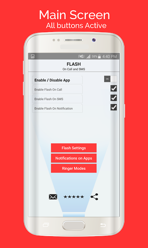 Flash 在通話和短信的應用程式是方便使用的和真的很容易使用。Flash 在電話和短信上的閃光有各種選項包括在它。眨眼間間隔和閃光燈閃爍計數上的撥入電話和 SMS 可以控制在這閃光的通知應用程式。您可以啟用或禁用呼叫的閃光燈和 SMS 在各種鈴聲模式中的應用。