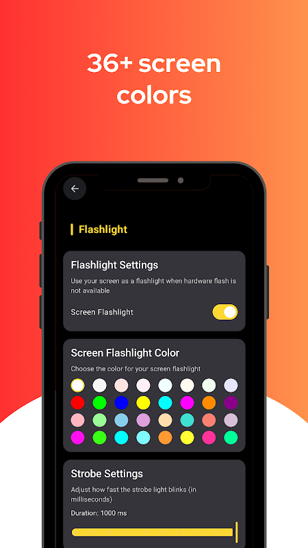 Flashlight Pro 的設計注重速度和簡單性,重量輕,易於導航,並針對所有 Android 裝置進行了最佳化 - 無論您使用的是最新的智慧型手機還是舊型號,都能確保流暢的效能。只需輕按幾下,您就可以啟動強大的光束,設定您喜歡的頻閃速度,或用超過 36 種顏色選項點亮您的螢幕。