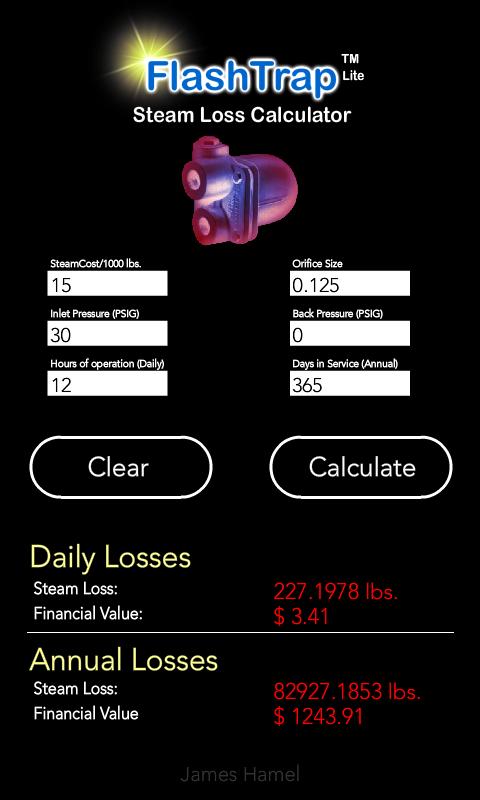 FlashTrap Lite is a Steam Loss Calculator for your droid!