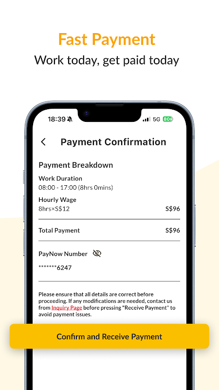 付款將透過 PayNow 發送。薪資將在完成工作後30分鐘內發放。