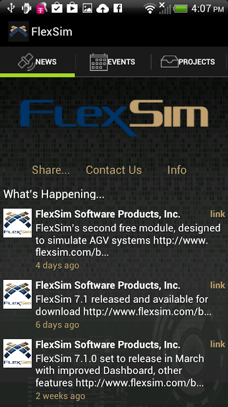 The FlexSim app uses a convenient mobile interface to bring the latest on modeling and simulation: