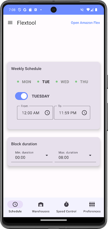 使用 Android Accessibility Service,Flextool 可以幫助自動化接受 Amazon Flex 區塊的過程。它透過模擬用戶互動來運作——無需對 Amazon Flex 應用程式本身進行任何修改。您始終掌控一切並根據您的喜好配置設定。