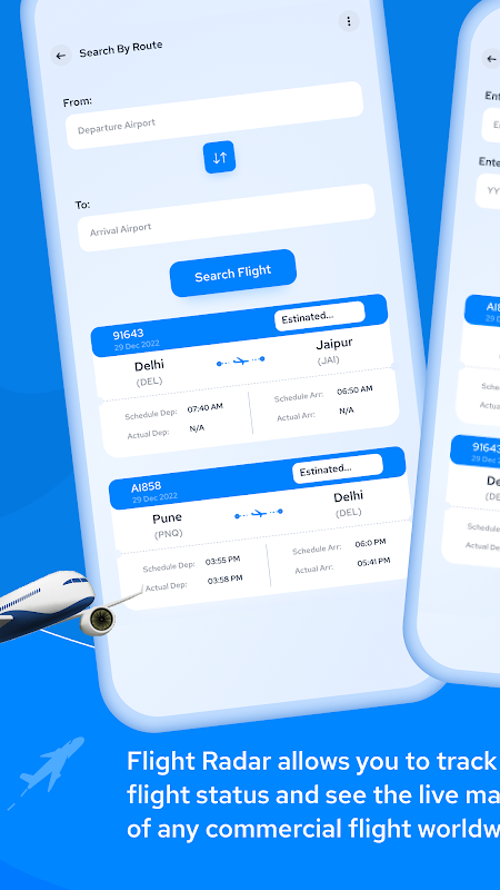這個軟件使用起來非常簡單。其餘的將在您提交航班詳細信息時由應用程序處理。您可以獲得實時信息和航班跟踪器以跟踪您的航班。因此,無論您是在家還是在機場,您都會得到通知。