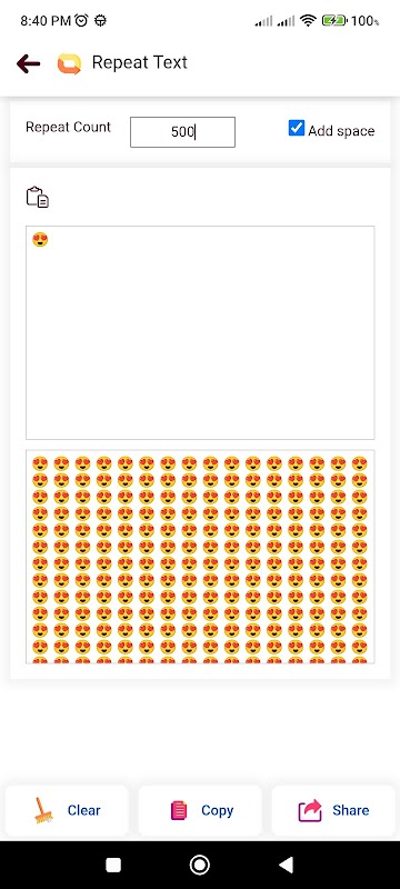 透過可自訂的重複次數重複文字多次。