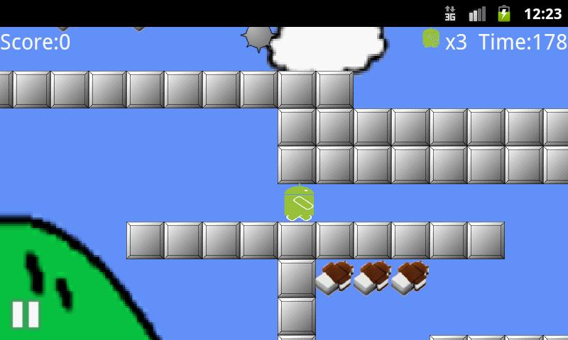 這個程序是一個遊戲操作中的Android吉祥物熟悉的綠色的傢伙,並在舞台上飛奔。