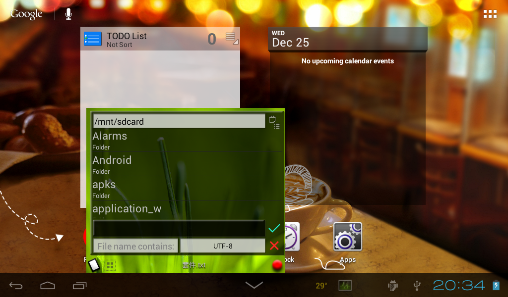 v16 Changed icon window will become half transparent after inactivated Support background change. Move the path to /mnt/sdcard/settings/WNP/ put any image file in this path and rename it to mynote.png to change the background img put font file in this path and rename it to mynote.ttf to change the note font The text color will be decided as the inverse color of the average color of the background.