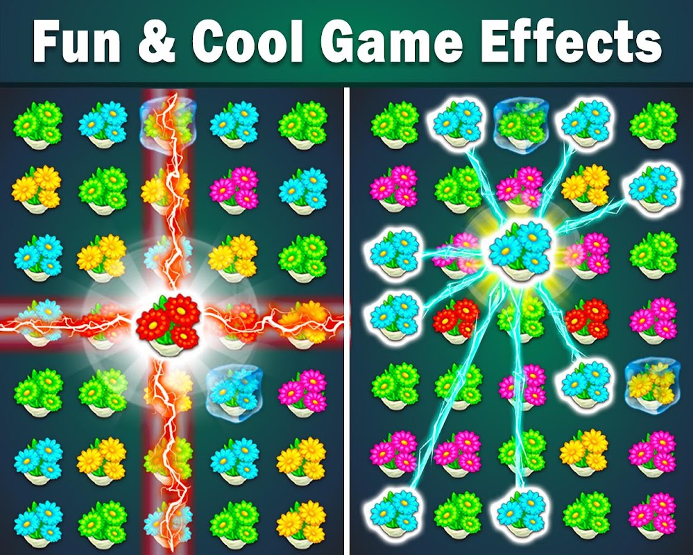 🌼 Make rows of at least 3 flowers to create a line blast and clear the board.