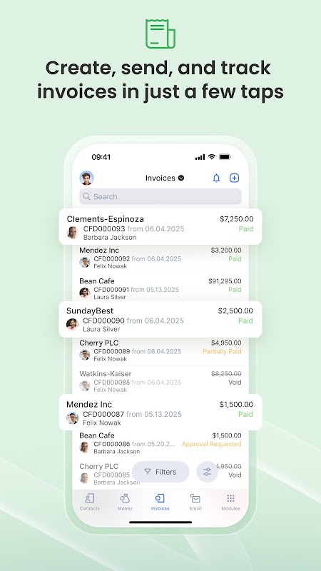 在一個應用程式中管理專案、客戶、發票和團隊協作。