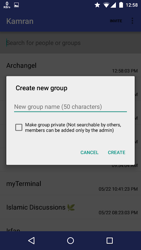 * Group chats: Public and Private