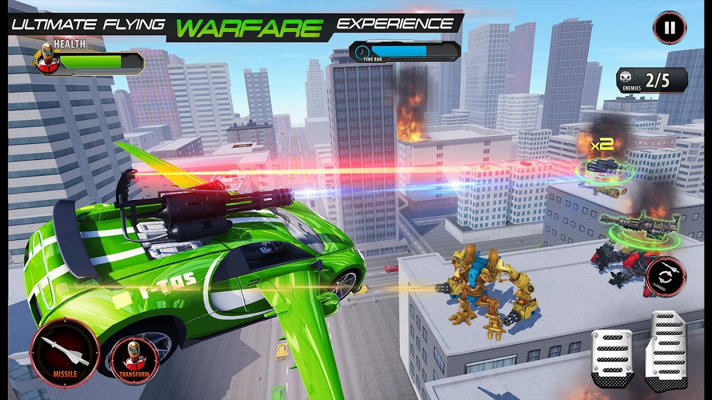 Multi transforming army flying car robot games, earn your wings with non-stop action flying car offline game, instantly you have best combination of car robot fighting & shooting game and flying robot car conversion game in comics futuristic city situation. Entertain yourself with exploit awaits robot fighting games with amazing robot car revolution & defeat enemy robots in flying robot car conversion game. Now in your robot car has extreme fast car speed, street grip and tough ability of transformation into real robot shooting & fight car. You are a driver of superior robotic car by transforming car into robot, save the city and be a modern robot hero & simulate your world in multi transforming army flying robot car game takes you on an implausible robot car experience. It’s time to show off your US army robot car driving and robot car fighting & robot car shooting skills to eliminate all enemies car robot with your futuristic laser weapons. Drive and flying super robot car in comics futuristic city environment and avoid collisions with other cars and robot’s games. Winged robot car game is remarkable robot car games than other robot vehicle games and robot car transformation games. You will reveal all challenges of US army robot car shooting game.