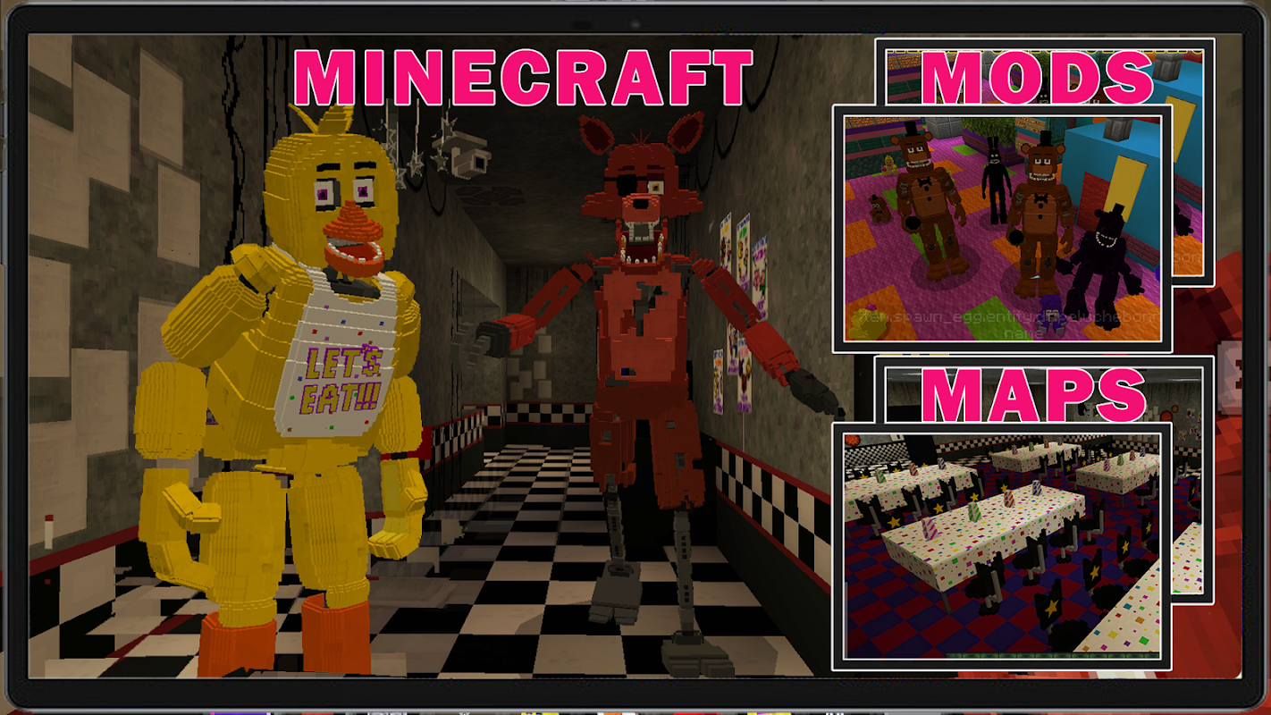 《玩具熊的五夜后宮》獨特主題的 Minecraft PE 模組和地圖!可以從我們的遊戲應用程序 FNaF Animatroni MCPE freddy, freddys c 輕鬆下載。安裝它們並