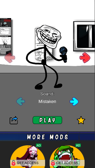 在遊戲中做什麼?在 FNF Trollface Mod Test 中,您需要創建自己獨特且不可重複的曲目。為此,請使用設備屏幕上的四個箭頭。通過單擊其中一個箭頭,Trollface 會發出某種聲音並做出某種運動。通過單擊箭頭,您可以每次都創建自己獨特的曲目。您可以讓您的每首曲目更加酷炫。在遊戲中你可以選擇不同的角色模組和不同的曲目,在此基礎上你將創作你的熱門歌曲。您也可以在遊戲中關閉音樂,只聽 Trollface 的聲音。