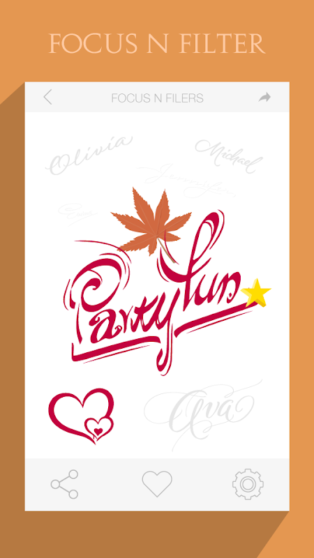 用焦點和過濾器寫你的名字。 你必須只寫你的名字和許多時尚的建議,你可以看到在這個焦點n過濾器。