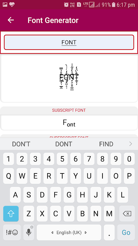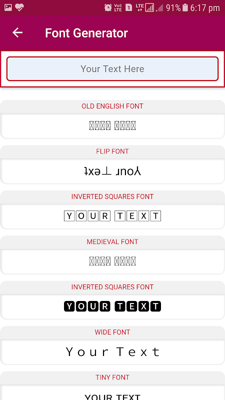 使用此應用程序非常簡單,只需在輸入文本區域輸入或粘貼常規文本即可。之後,將自動生成各種字體,您可以從中選擇所需的字體。然後單擊該字體以將其複制並在所需的任何位置使用該字體。
