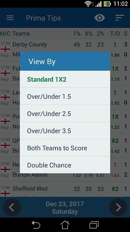 此外,您可以按照不同的標准進行排序,例如主場獲勝的概率高或超過 1.5 個進球。通過這種方式,您可以查看給定類別中的熱門預測並選擇最適合您的預測。