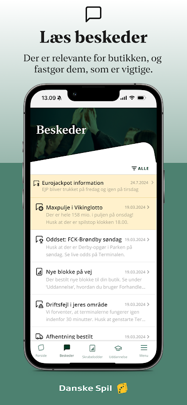 使用 Danske Spil Forhandler 應用程式接收並開啟待售區塊,因此您無需站在碼頭。