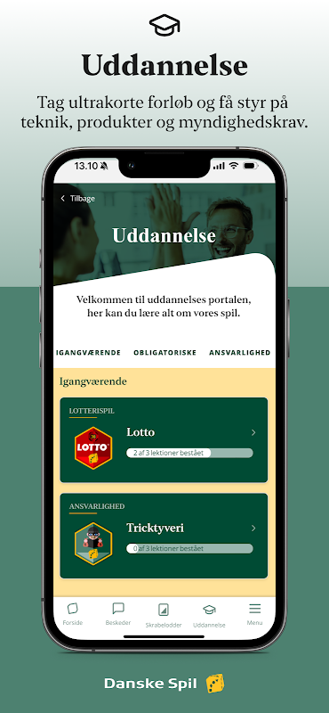 經銷商學校的超短期課程包括:碼頭、零售商經濟學、零售商技術以及 Danske Spil 的所有產品。