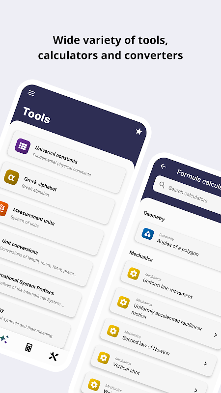 Formulia 是一款針對在學科(主要是工程學)中學習精確科學的學生的應用程式。其目標是提供數學、物理和化學不同分支的大量公式,以及在執行某些計算時有很大幫助的各種其他工具。