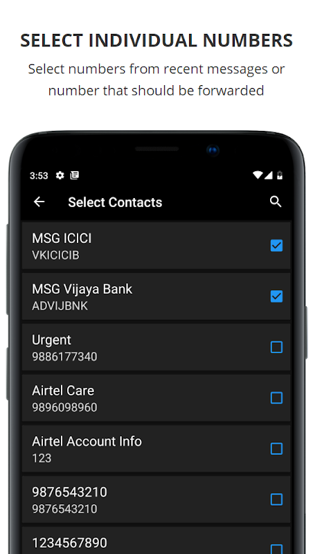The app allows you to forward incoming SMS messages to any number in the world. You have the option to forward all the messages or some of them as per your needs. You can forward messages to multiple numbers also.