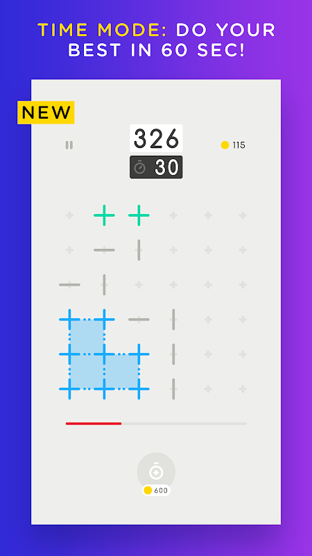 滑動以組合垂直和水平線並獲得加號。將四個加號組合在方形保持架中,然後雙擊以將其移除。在每5次移動之後,交叉產生並使事情變得更難。像加號籠一樣移除它們。當網格上沒有任何移動時,遊戲結束。您還可以通過每天可以玩的獎勵遊戲賺取更多金幣。