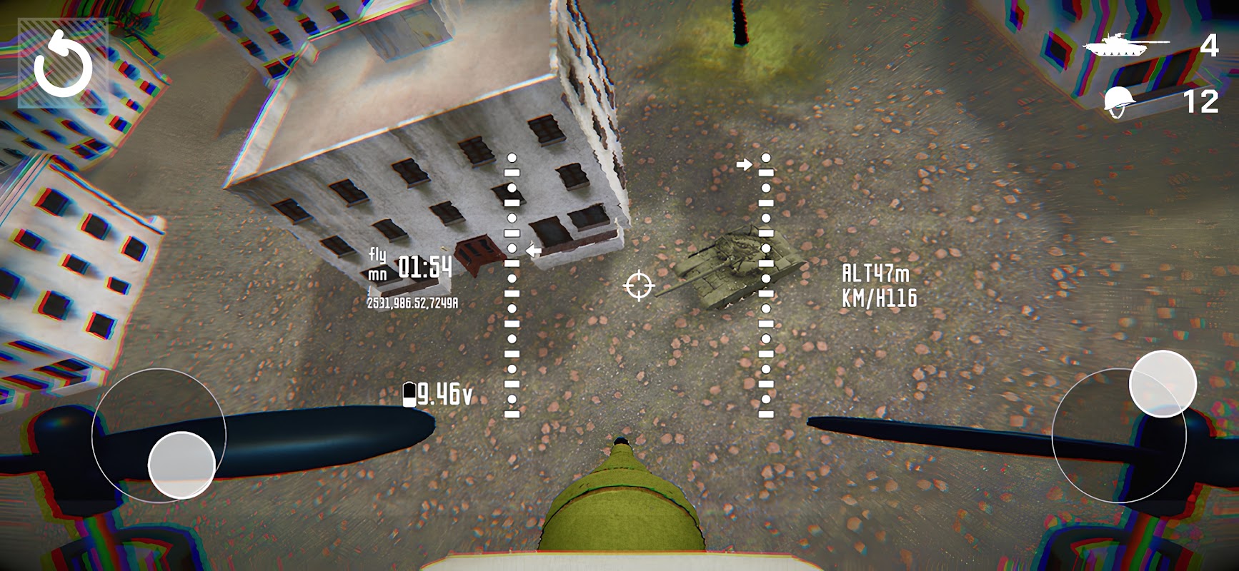 FPV無人機操作員模擬器動作遊戲的獨特功能之一是FPS第一人稱視角模式,它使FPV戰鬥控制逼真且令人興奮,讓您完全沉浸在駕駛過程中。如果您的 FPV 無人機被摧毀,您可以呼叫新的無人機並重複任務!