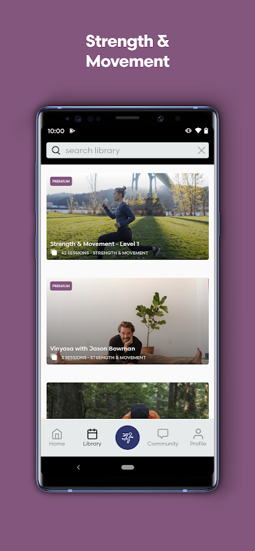 - 在庫中按長度、關鍵字和類別輕鬆搜索訓練計劃、瑜伽流程、力量訓練、冥想、播客片段等