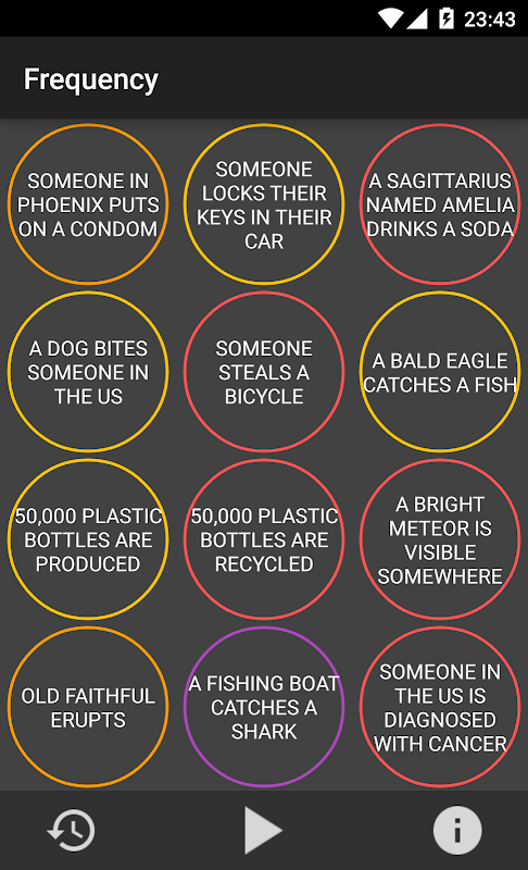 As of now, Frequency only has the original events in xkcd comic. This will change once the server is up and new events are made available.