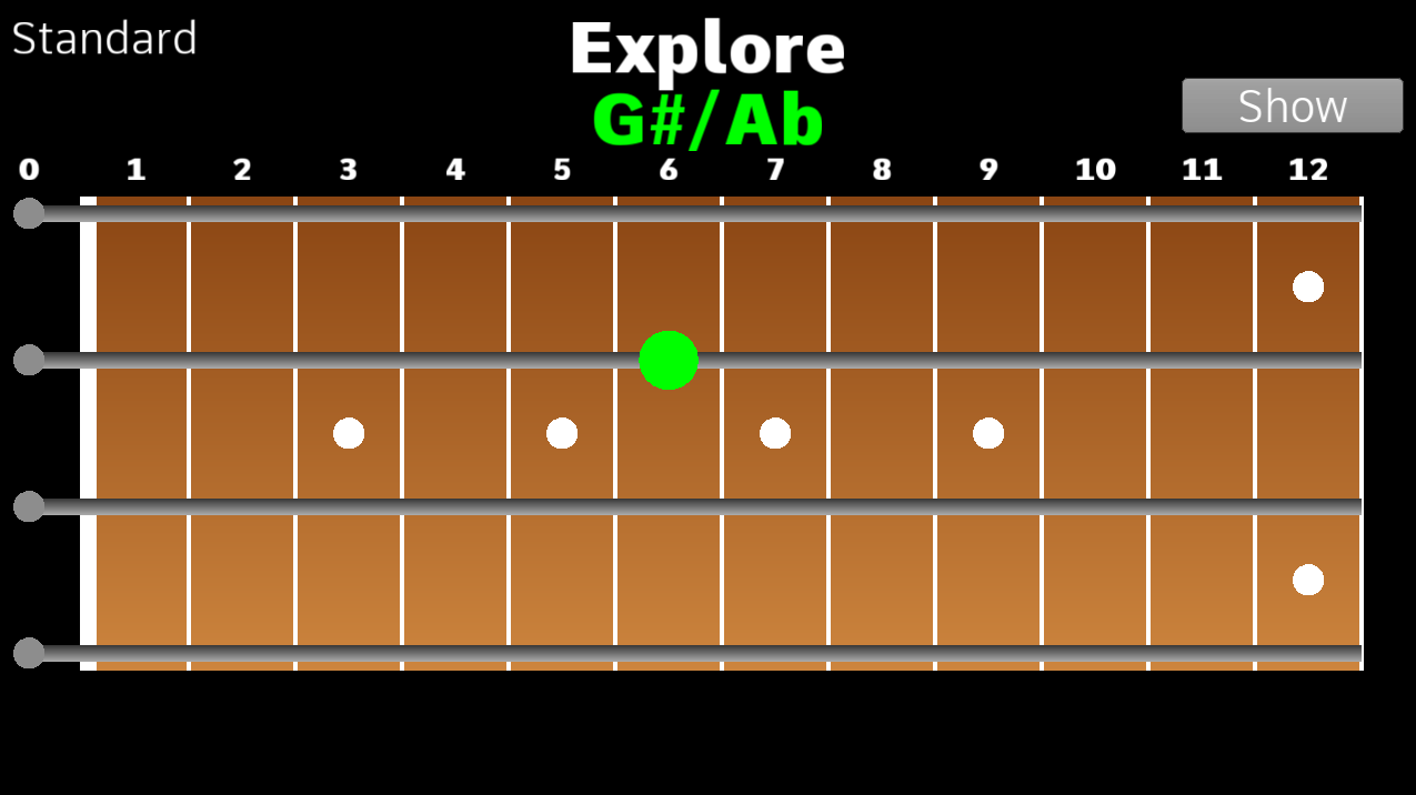 學習並通過五種不同的遊戲類型熟記指板的音符。這種教練機的應用程序提供了多達22苦惱練習和掌握熟練指板。遊戲的吉他音符,低音音符,和班卓琴筆記,筆記四弦琴,曼陀林和票據將名字與儀器上的位置。