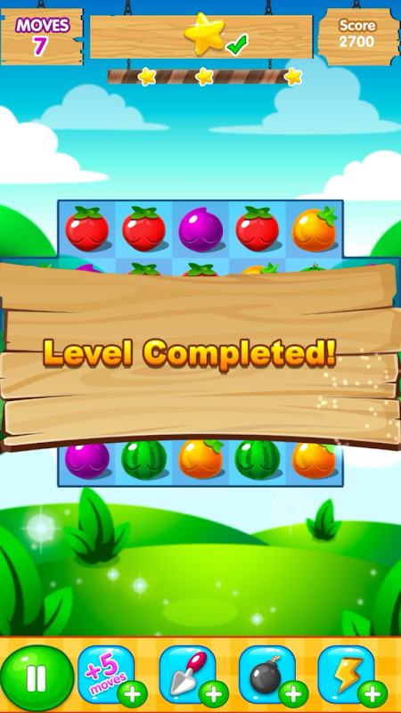 At each level, we will challenge you with different targets -- e.g., collecting special blocks, breaking bombs, blasting one or two types of fruit, getting stars - with timeout or blast number.