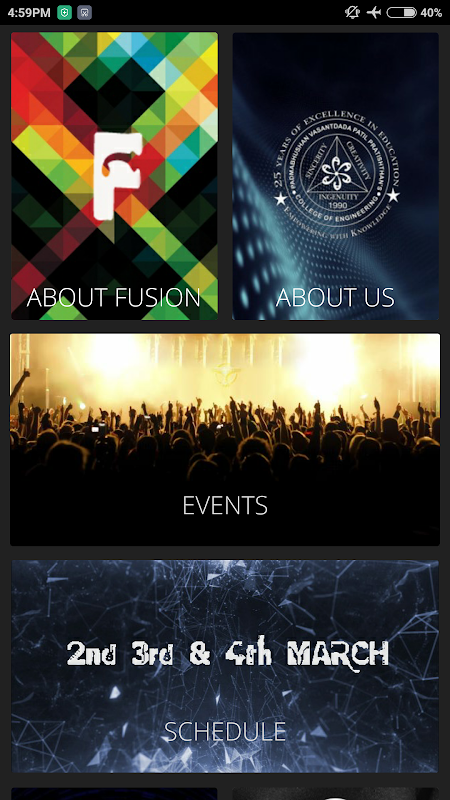 Fusion is the annual Techno-Cultural festival of, Padmabhushan Vasantdada Patil Pratishthan’s College of Engineering. Fusion means a combination of different materials, which in our case, is a mixture of technical and cultural activities. Fusion is a platform for students to show off their Technical and Creative skills. It is a tradition of this college which is being followed for more than 15 years now. Fusion: Glitters of unity and exuberance, a three day long extravaganza. An event that will provide not only fun and frolic, but the opportunity to interact with pupils of different institutions .Fusion is the platform to showcase talent of a student. The event will host a bagful of activities.