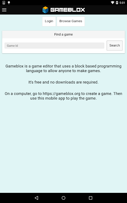 You can make different types of games on gameblox.org, including platformers, action and narrative games. With the mobile app, you can try out mobile specific features including games where you tilt your device, and read QR codes. Have fun making games, we look forward to playing the games you create!