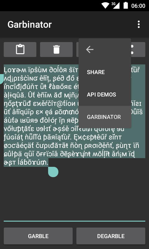 亂碼/ Degarbled文本可以被複製到剪貼板或應用程序共享。