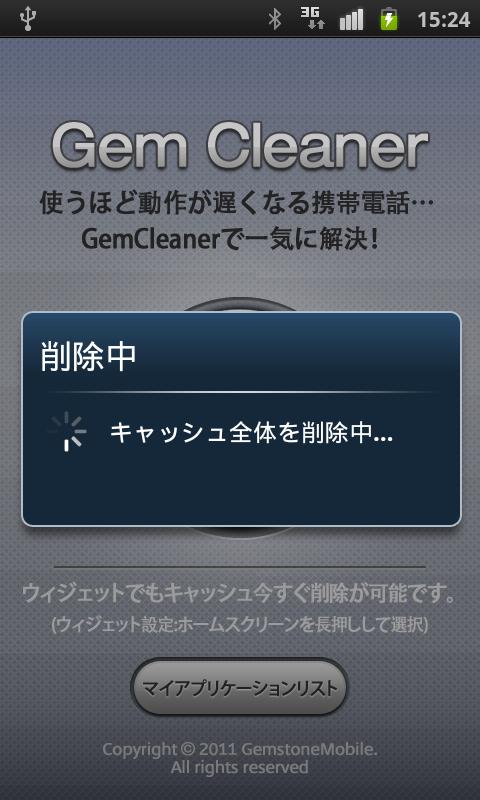 - Gem CleanerウィジェットをTouchすると、キャッシュの全体削除が行われ、便利に使えます。